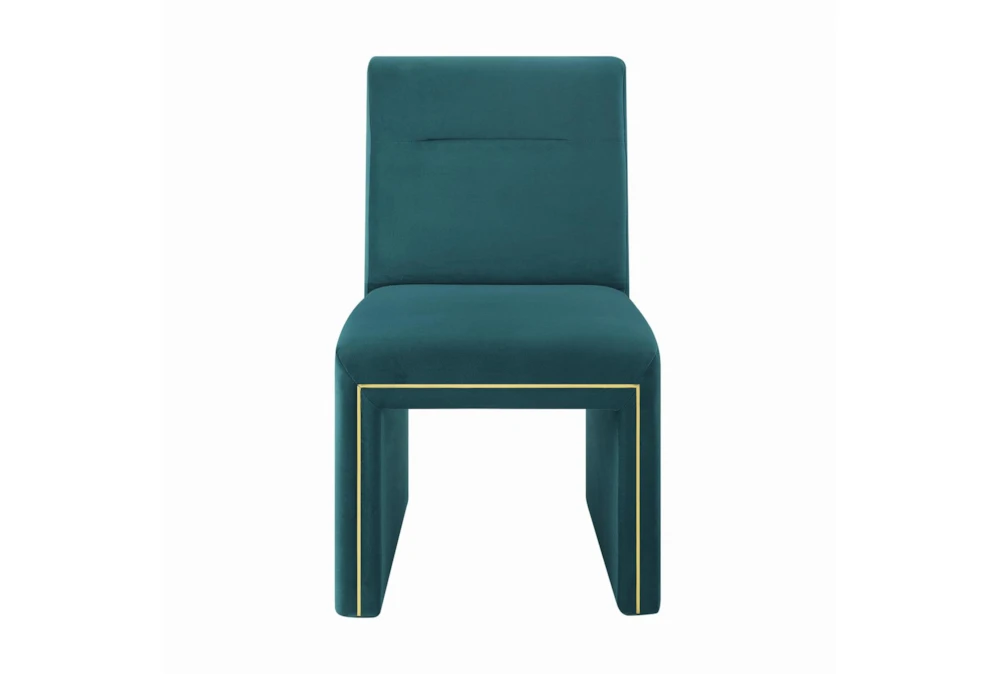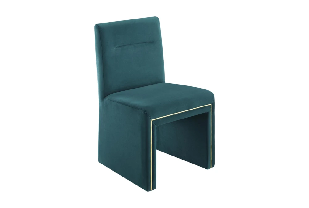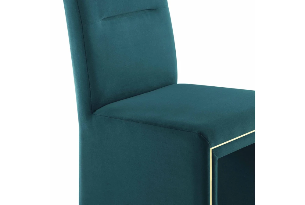 This Affa Teal Performance Velvet Dining Chair is a modern addition to any dining room, featuring a stylish armless design and made with high-quality fabric material. Its chic appearance and comfortable feel make it the perfect choice for any home decor.
