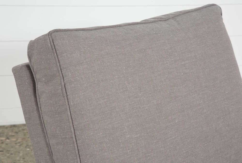 Bring multiple forms of relaxation to your room with our comfortable, versatile Becca swivel glider recliner. Featuring a hidden handle that controls its reclining mechanism, this design allows you to stretch your legs, swivel 180 degrees, and glide front to back β so you can enjoy going through the motions that make you feel most at ease. With clean-lined track arms and neutral grey upholstery, this piece will look good anywhere it goes, especially your nursery. Through our Special Order program, you can customize the fabric at no extra cost.