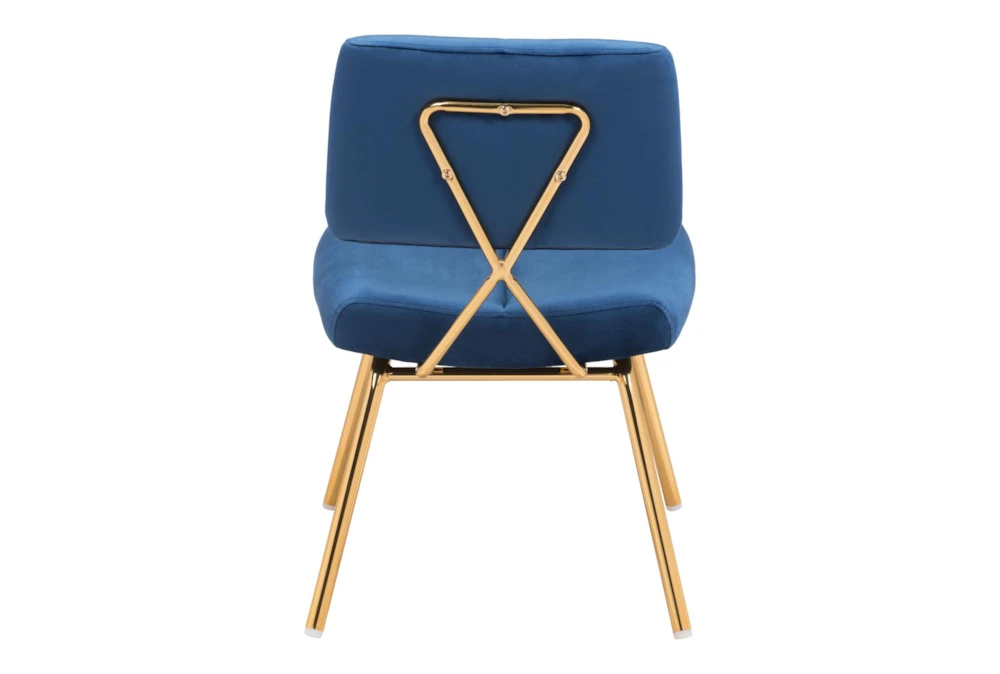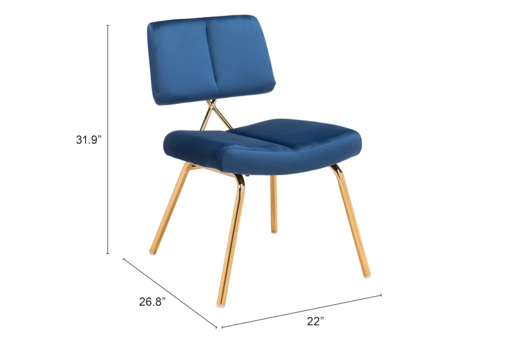 This contemporary blue dining chair set of 2 boasts an armless design with backrest, crafted from durable metal and complemented by a secondary material of wood. The perfect addition to any dining room, these chairs offer a stylish and comfortable seating option in a vibrant blue hue.