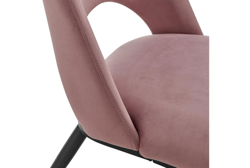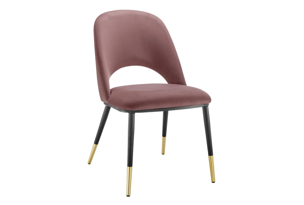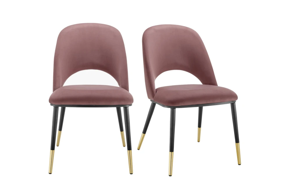 The Darcie Rose Velvet Side Chair comes in a set of 2 and has a modern style. These armless chairs are made of pink velvet material and are perfect for use in the dining room.