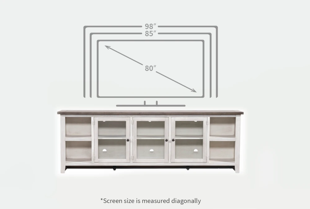 Be the first to review “Dixon White 97″ Tv Stand With Glass Doors” Cancel reply