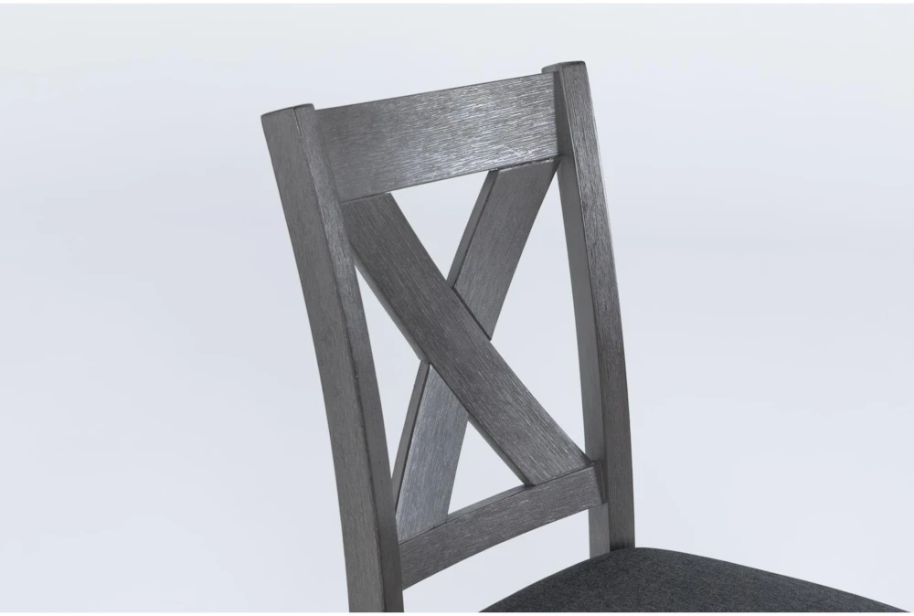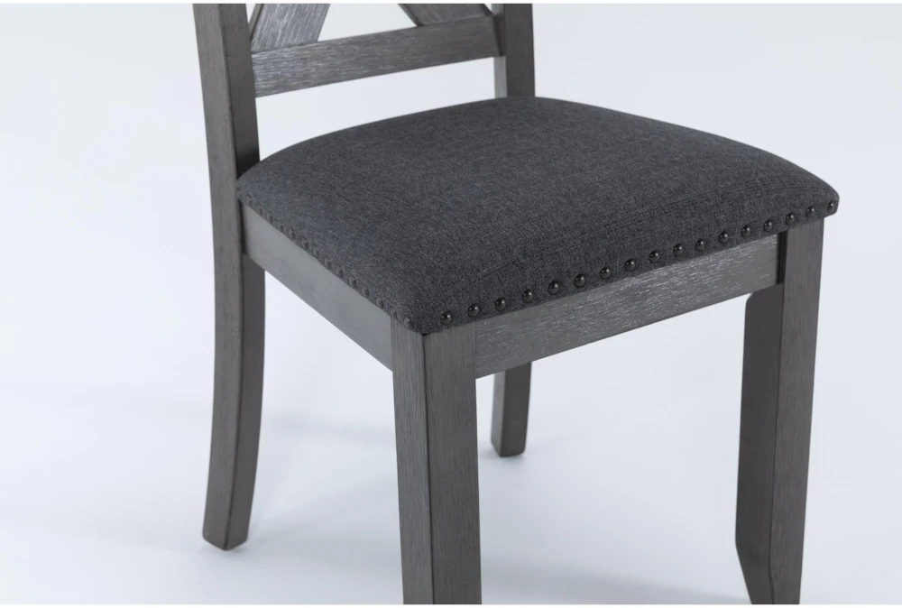 - The dark grey color and nailhead trim add a touch of sophistication to any dining space.