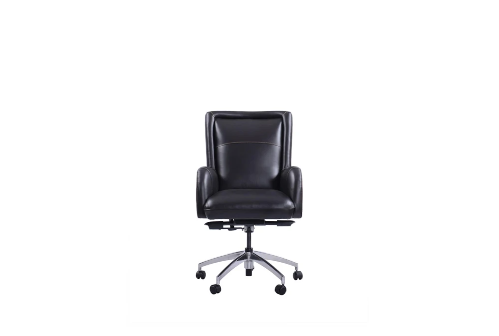Experience the epitome of luxury with the Edgar Black Leather Office Chair, featuring a traditional style and high-quality leather material. This chair boasts wheels, arms, a swivel function, and a high back for ultimate comfort and convenience in any office setting.
