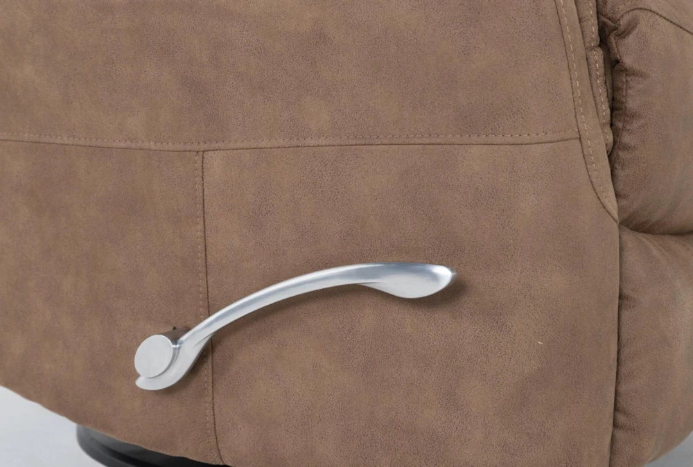The Gannon Autumn Swivel Glider Rocker Recliner with Adjustable Headrest is a contemporary style recliner made of high performance polyester fabric in a brown autumn color. This versatile chair features a swivel base and an adjustable headrest for optimal comfort and support, making it the perfect addition to any living room or bedroom.