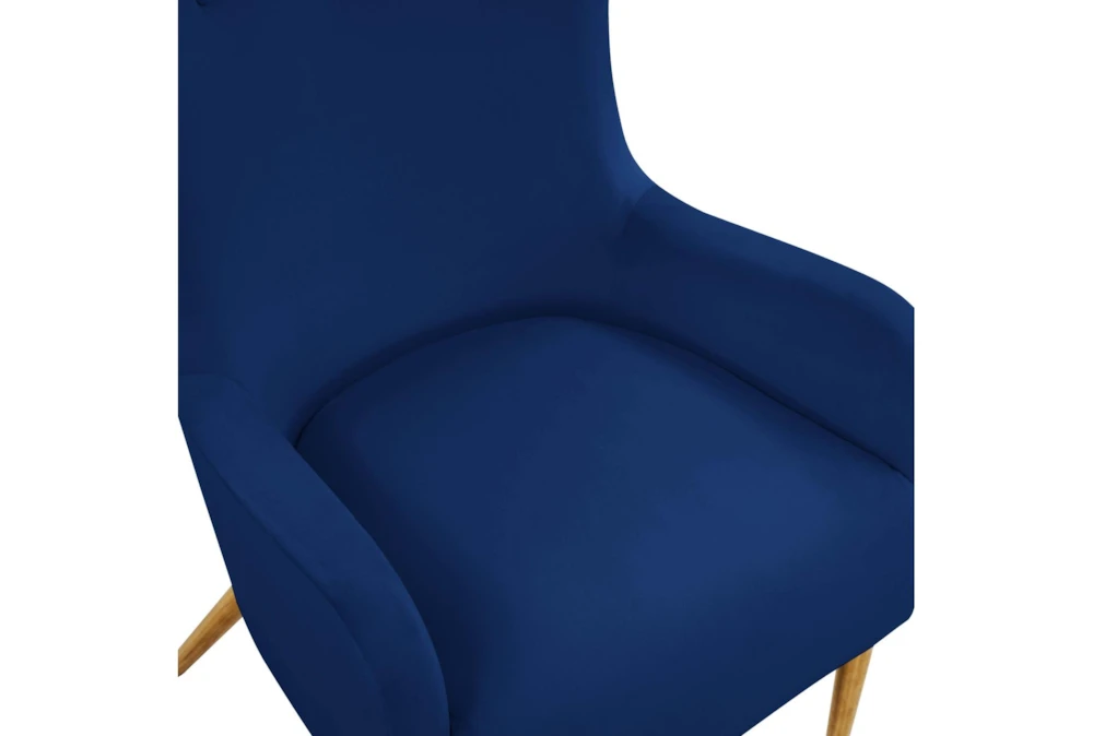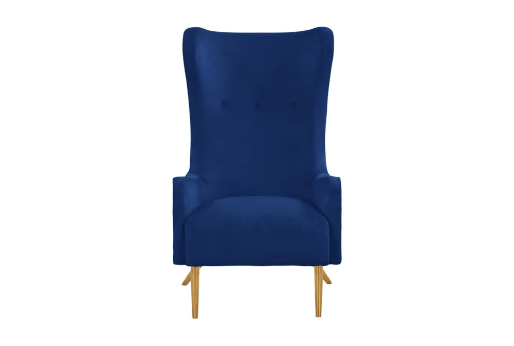 This Macey Navy Velvet Wingback Accent Chair boasts a high back and track arms, with a tufted design and foam cushions for ultimate comfort and style. Perfect for any modern living room, this indoor chair is made from luxurious fabric and features a tight back and wingback design.
