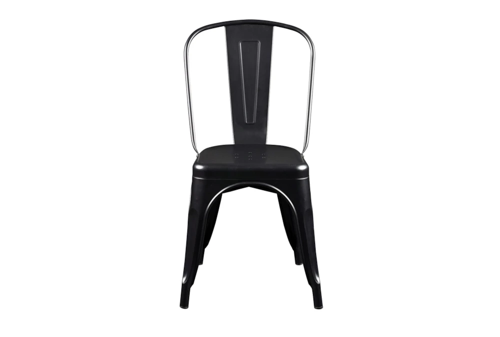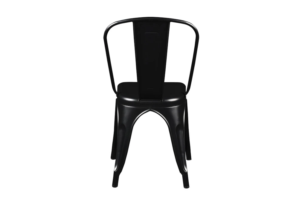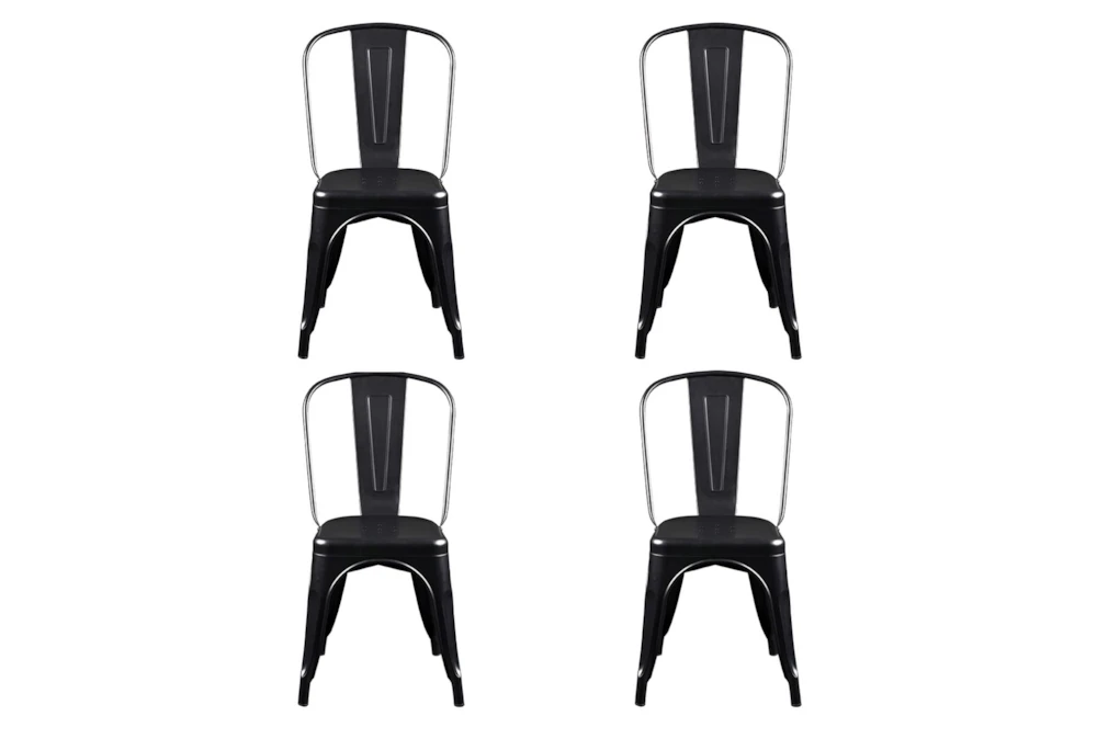 This set of 4 Wates Matte Black Stacking Metal Café Chairs features a rustic style and is made of powder-coated steel with stretchers under the seat. With plastic glides and the ability to stack up to 14 units, these chairs are contract grade and perfect for any dining room.